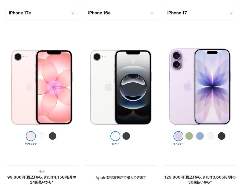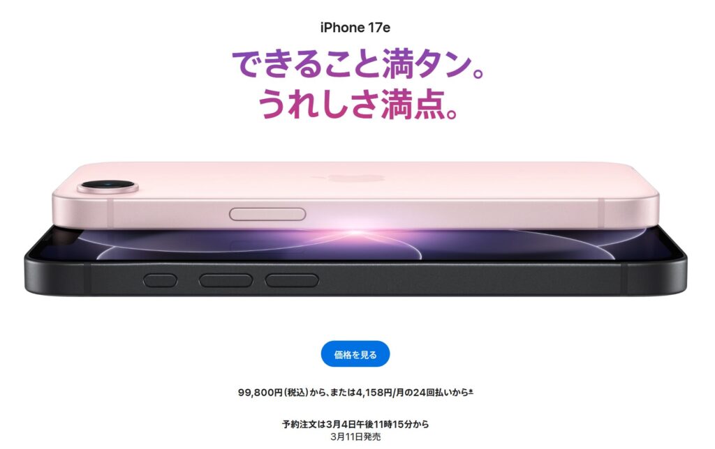 iPhone 17eが256GB99,800円、iPhone 17の無印モデルは129,800円なんですよね。