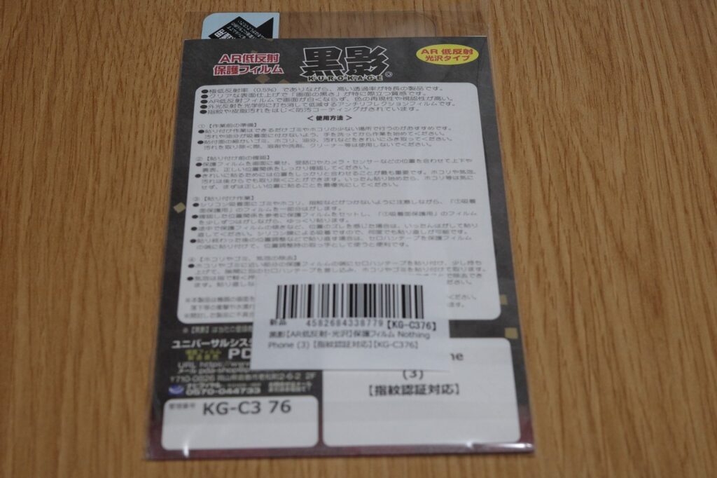 黒影を貼ることで画面の反射を抑えつつ表示は普通の光沢フィルムのような綺麗さを確保可能。